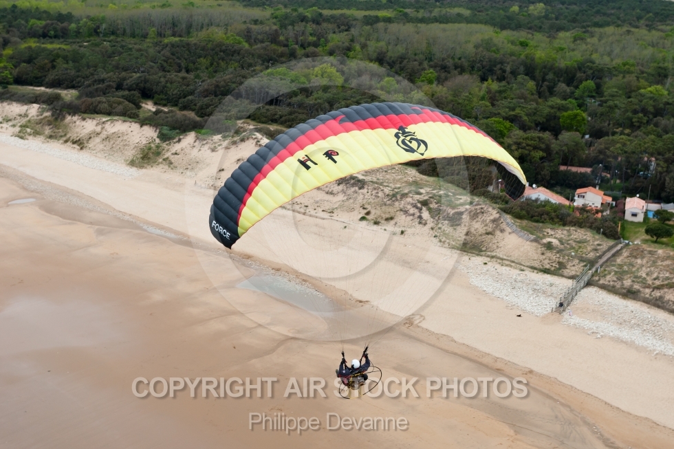 Photo aérienne d un paramoteur en bord de mer à Jard-sur-mer, Vendée 85, région Pays de la Loire, France, Europe