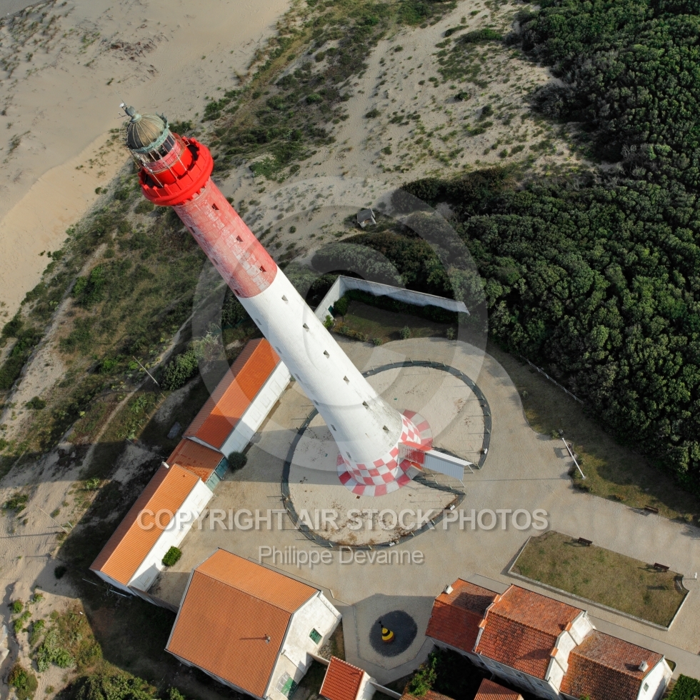 Description: Phare de la Coubre vue du ciel, Coubre-la-Tremblade, commune les Mathes, 17570, département de la Charente-Maritime 17, Région Poitou-charentes, France, Europe