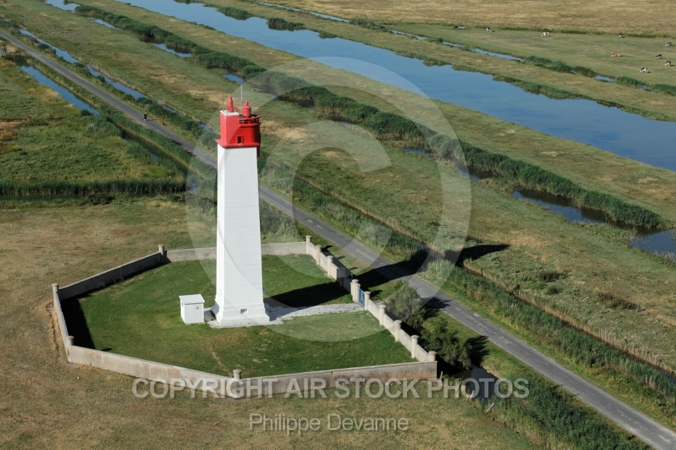 Description: Photo aérienne du phare situé à proximité de l embouchure de la Charente entre le Fort la Pointe ou fort Vasoux et la Cabane des Cabanes sur la commune de Fouras 17450, département de la Charente-Maritime 17, Région Poitou-charentes, France, Europe