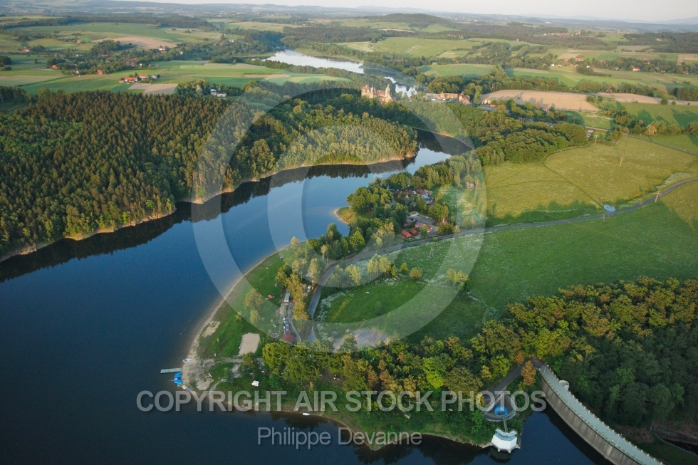 photo aérienne Czocha zamek château Pologne Polska Lwowecki Jelenia Gora Jeleniogorski vue aérienne vue du ciel paramoteur paramotor Europe