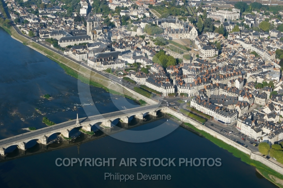 Description: photo aérienne de Blois vue du ciel , la loire et le pont de Jacques Gabriel, Blois 41000, Région Centre