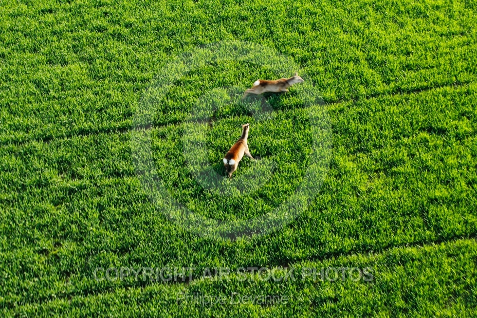 biche vue du ciel printemps vert culture champs